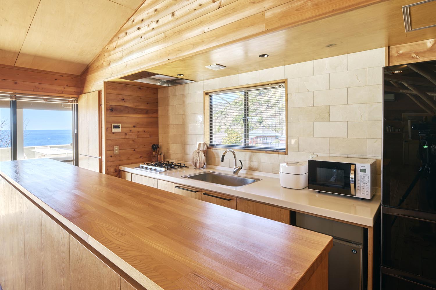 | 調理設備と調味料 | 3口ガスコンロ/製氷機/電子レンジ(トースター機能付き)/冷蔵庫/炊飯器/鍋、フライパン/電気ケトル/包丁、ピーラー/食器類/グラス、カップ類/カラトリー/ディッシュソープ/調味料 (オリーブオイル、塩, コショウ、砂糖、しょうゆ) /浄水ポット ※その他必要な物がありましたら、恐れ入りますがご持参ください。 |