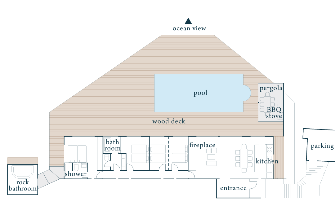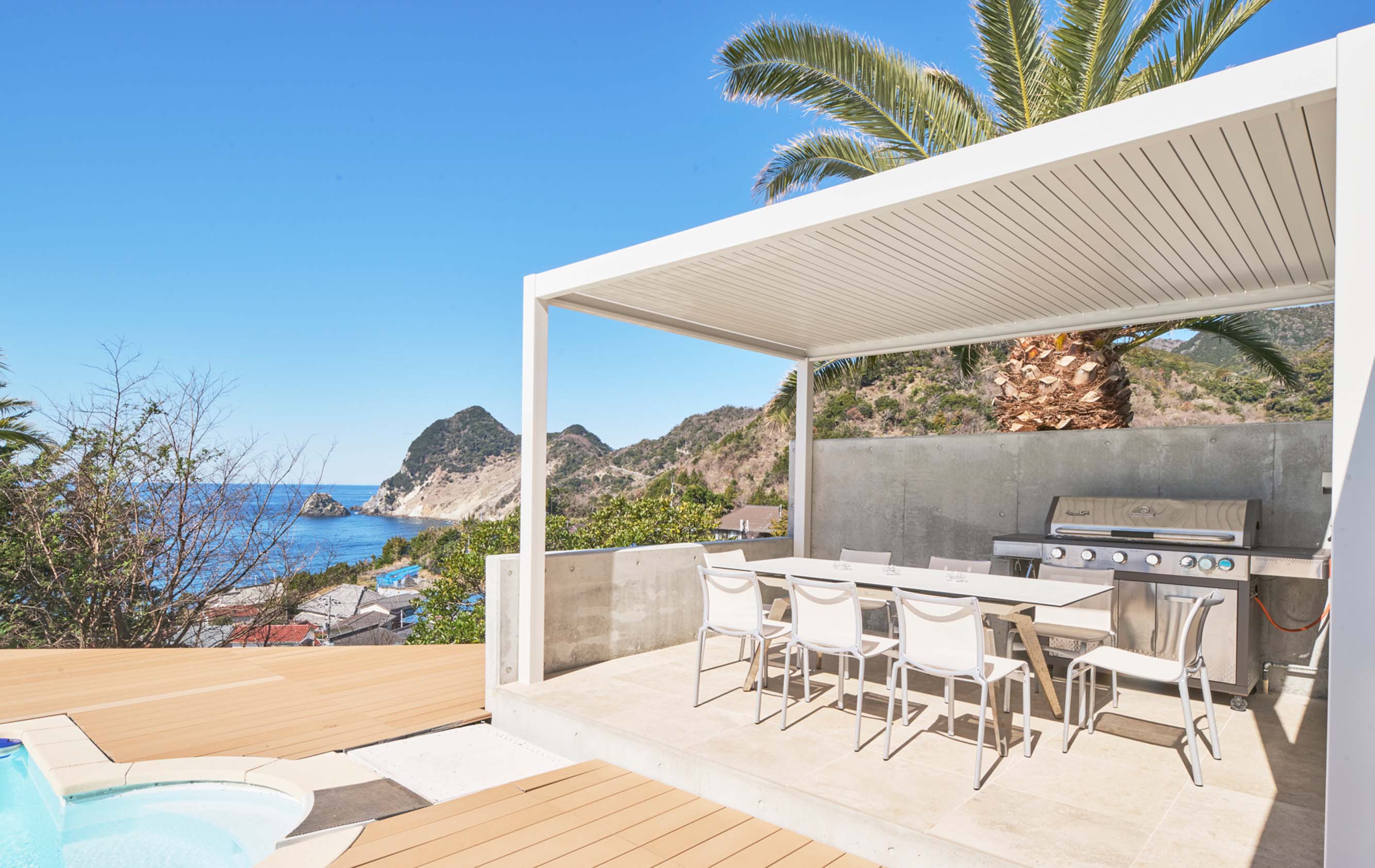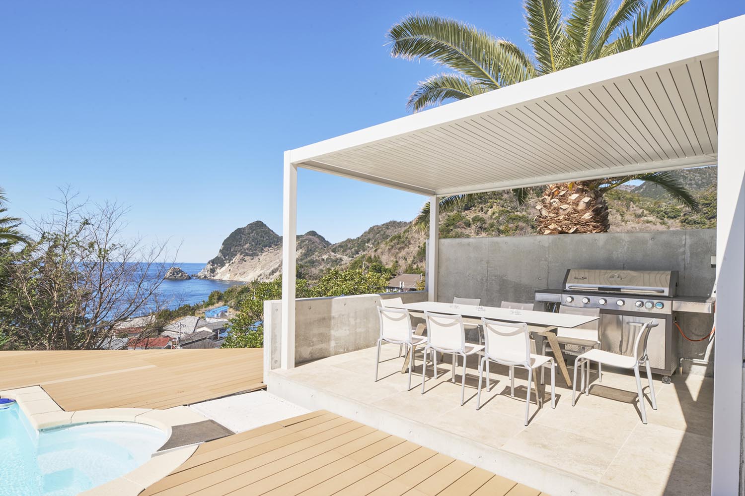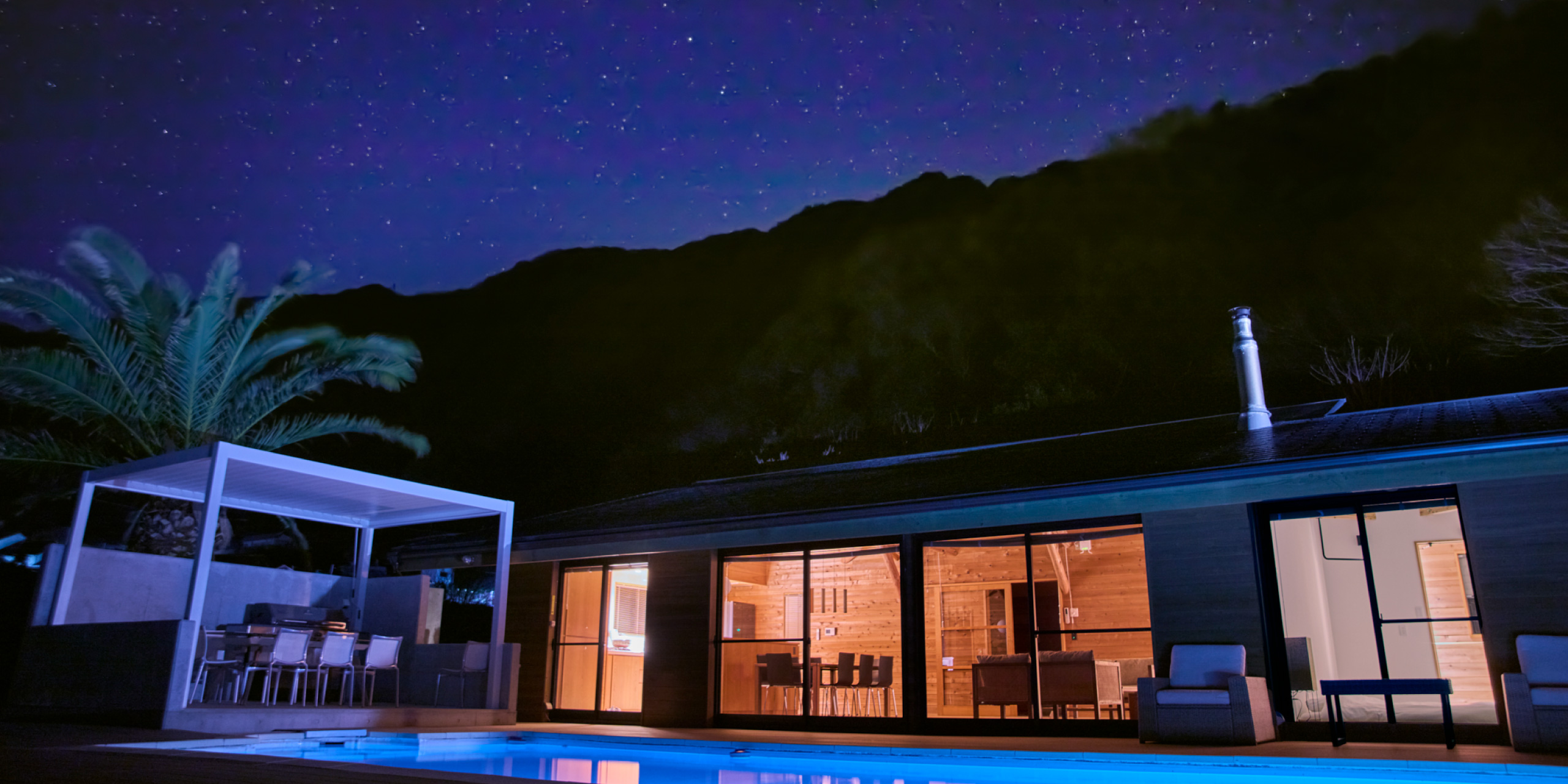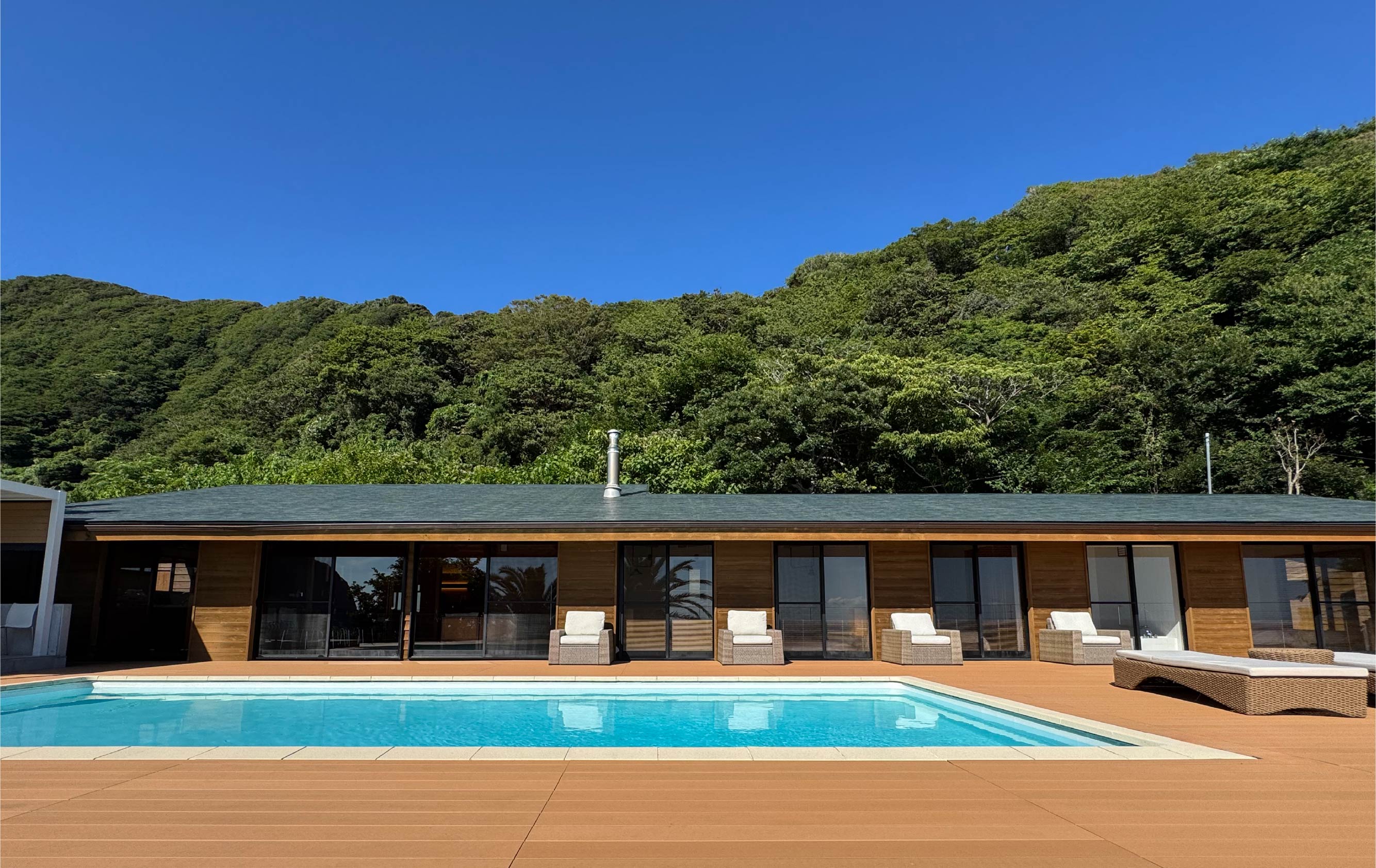 | 家具や設備 | <屋内> リゾートソファ(4名)/ダイニングテーブル(8名)/Wi-Fi/トイレ・洗面台2か所/セミダブルベッド4台 /5層布団 4組 <屋外> ウッドデッキ/屋根付きパーゴラ/ガーデンテーブル&チェア/ガス式BBQグリル/屋外ソファ4脚/サマーベッド2台 |